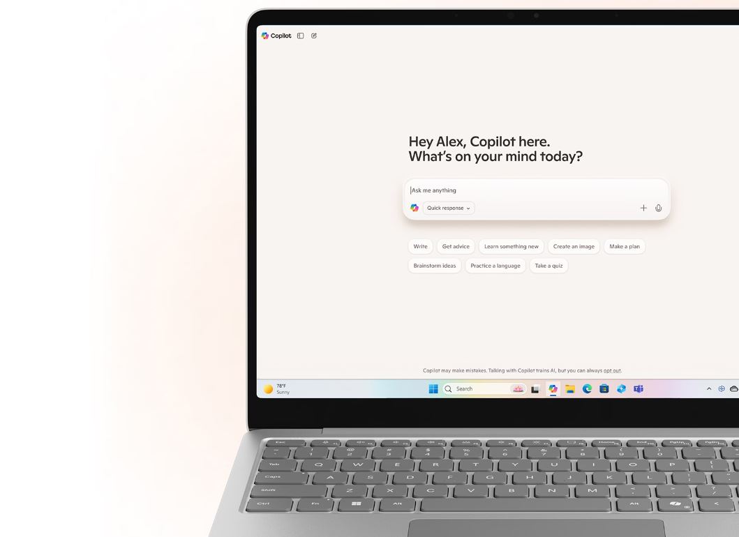 Vyhledejte Copilota na svém počítači nebo mobilním zařízení a získejte pomoc, když ji potřebujete, pomocí textu nebo hlasu.