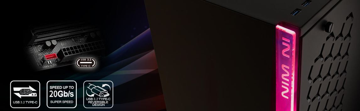 Model 101C je vybaven nejnovější špičkovou technologií, která podporuje základní desky s rozhraním USB 3.2 Gen 2x2 Type-C. Uživatelé mohou využívat nejvyšší rychlosti přenosu dat a pohodlí reverzibilního portu Type-C.
