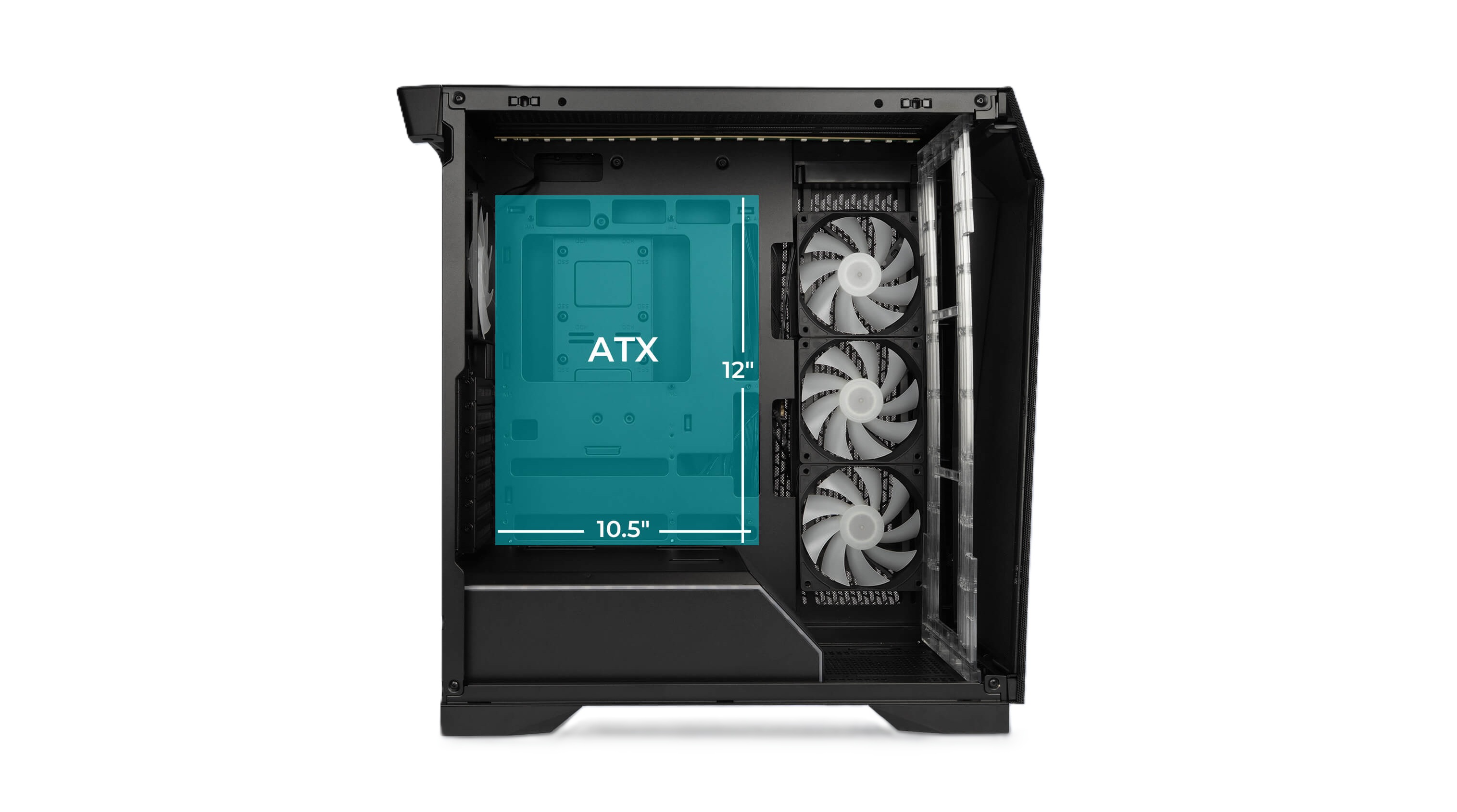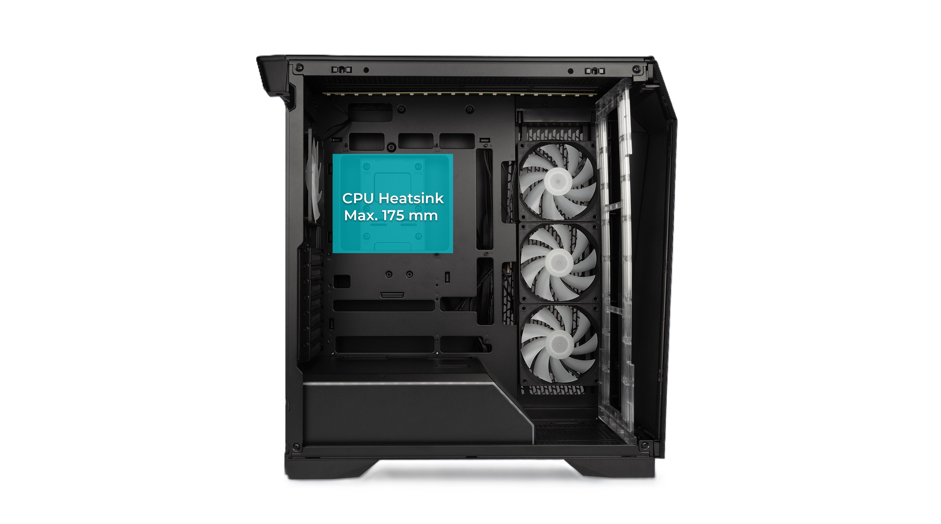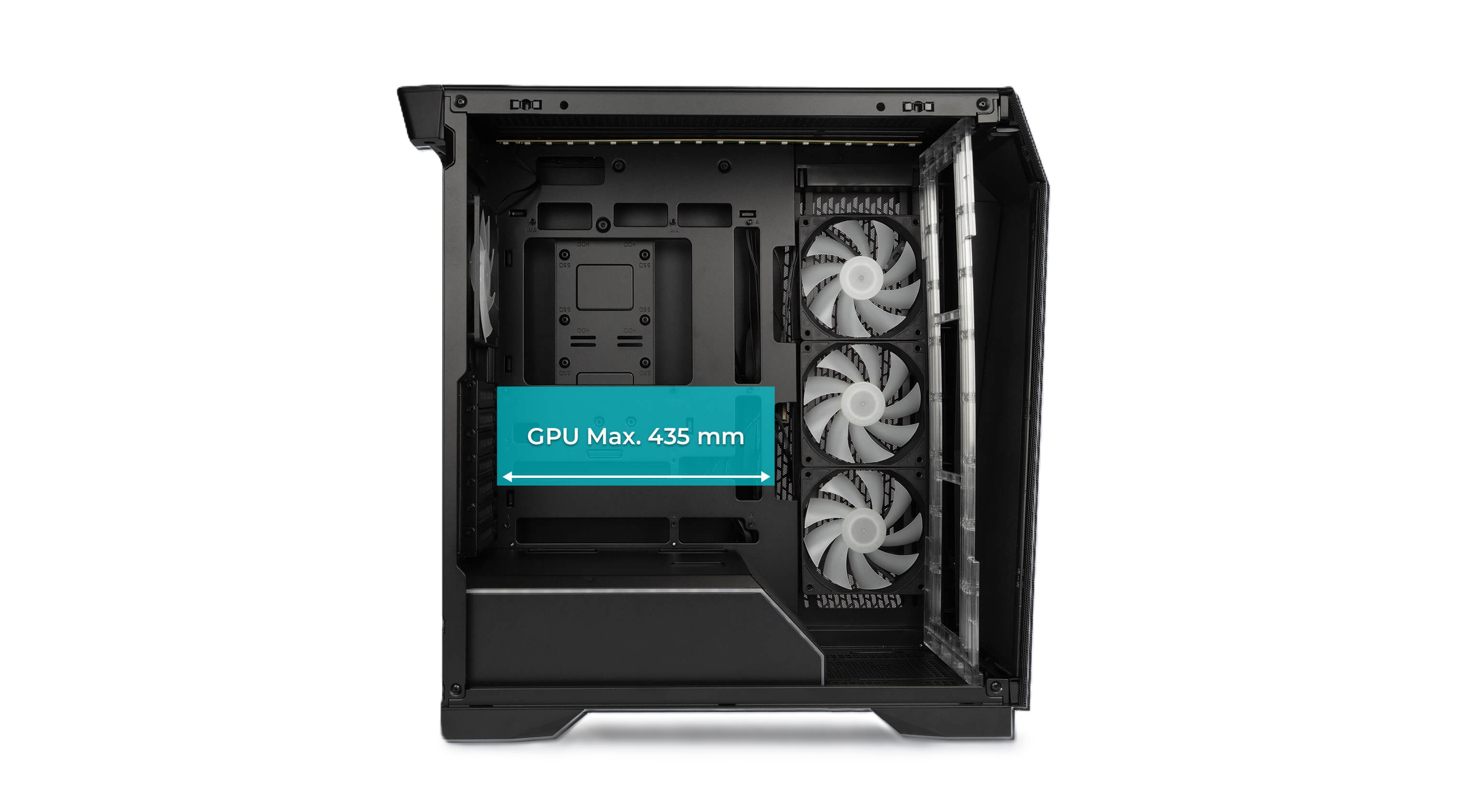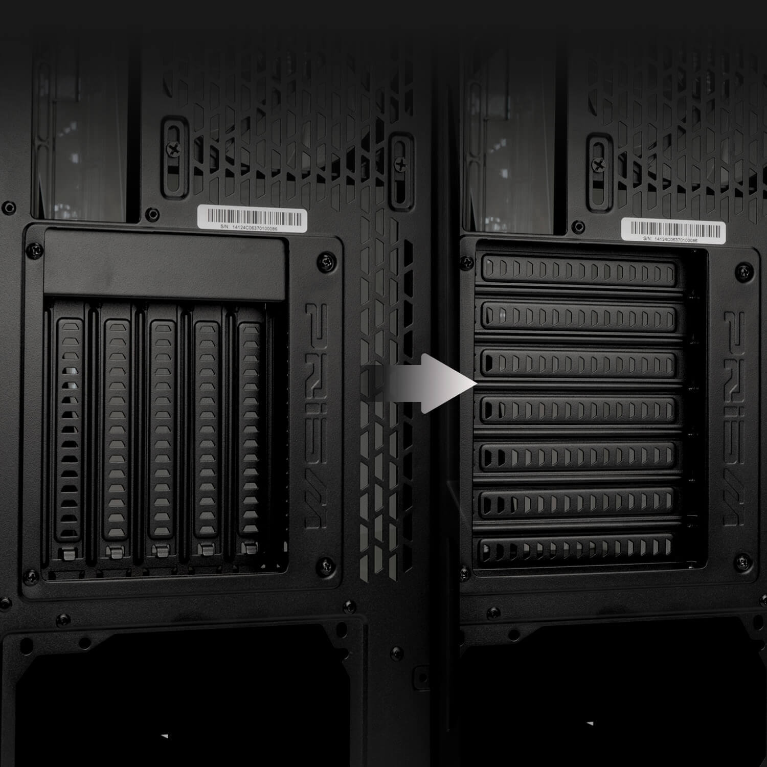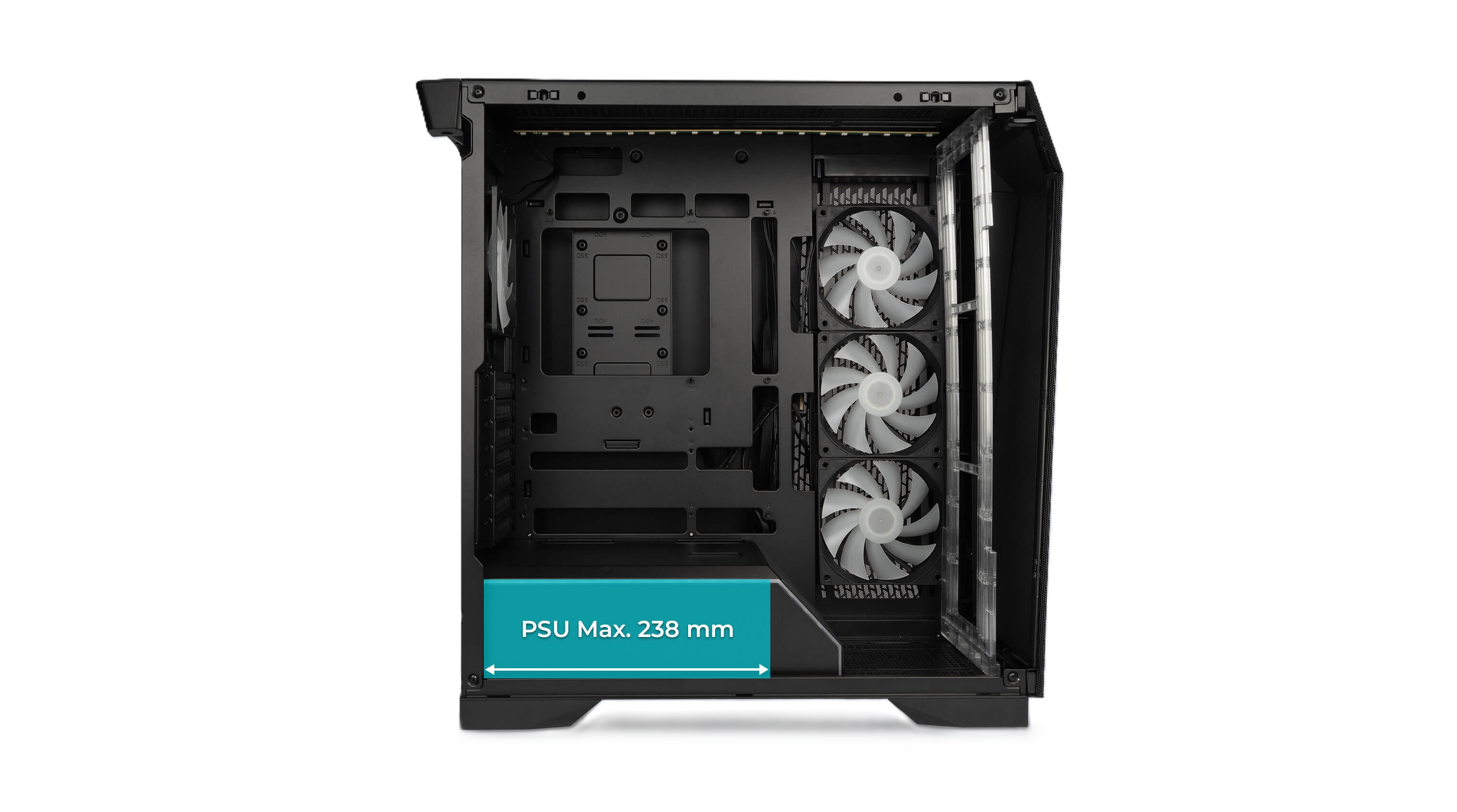 PRISM podporuje základní desky ATX a grafické procesory do 435 mm, je to ideální šasi pro výkonné pracovní stanice a herní sestavy.
