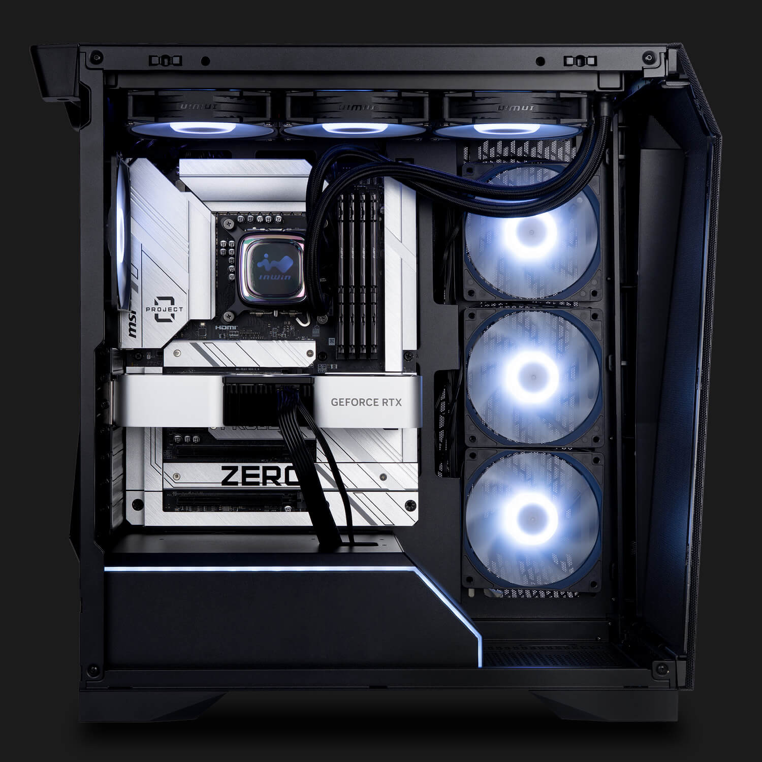 Zrcadlový skleněný panel PRISM, inspirovaný šasi s podpisem Tou společnosti InWin, zakrývá vaše komponenty, když jsou světla vypnutá, a odhaluje se, až když vnitřní osvětlení prozáří a vytvoří průhledný až neprůhledný vizuální efekt.