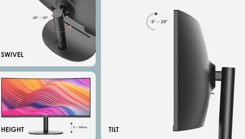 Moderní monitor hladce integruje elegantní design s živým výkonem a vyhovuje těm, kteří oceňují jak estetiku, tak funkčnost. Jeho elegantní křivky a živý displej poskytují vynikající vizuální zážitek, což z něj činí ideální volbu pro vaše studio a práci s médii.