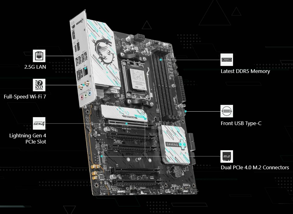 - Bleskový zážitek z hranà her: Slot PCIe 4.0, Lightning Gen 4 x4 M.2, přednà USB typu C