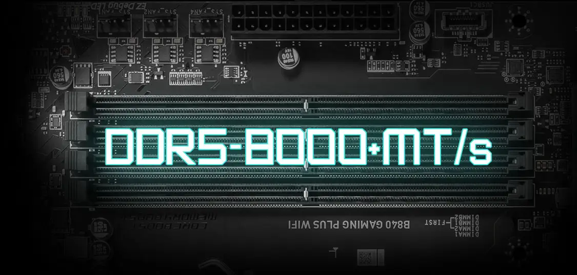 ObrovskĂ˝ krok ke zvýšenĂ vĂ˝konu pamÄ›tĂ DDR s nejnovÄ›jšà pamÄ›tĂ DDR5. V kombinaci se speciálnĂm procesem svaĹ™ovánĂ SMT a technologiĂ MSI Memory Boost je B840 GAMING PLUS WIFI pĹ™ipravena poskytnout prvotĹ™ĂdnĂ vĂ˝kon pamÄ›ti.