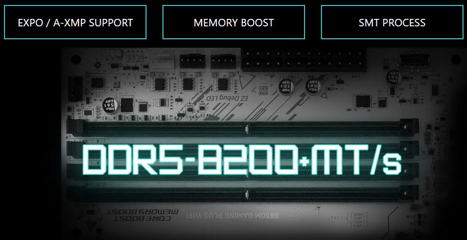 ObrovskĂ˝ pokrok ve zvýšenĂ vĂ˝konu DDR dĂky nejnovÄ›jšà pamÄ›ti DDR5. V kombinaci s vyhrazenĂ˝m procesem svaĹ™ovánĂ SMT a technologiĂ MSI Memory Boost je B850M GAMING PLUS WIFI pĹ™ipravena poskytovat špiÄŤkovĂ˝ vĂ˝kon pamÄ›ti.