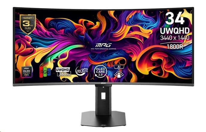 MSI LCD MPG 341CQR QD-OLED X36, 34", 3440x1440, QD OLED, 0,03 ms, VESA 100x100, Black