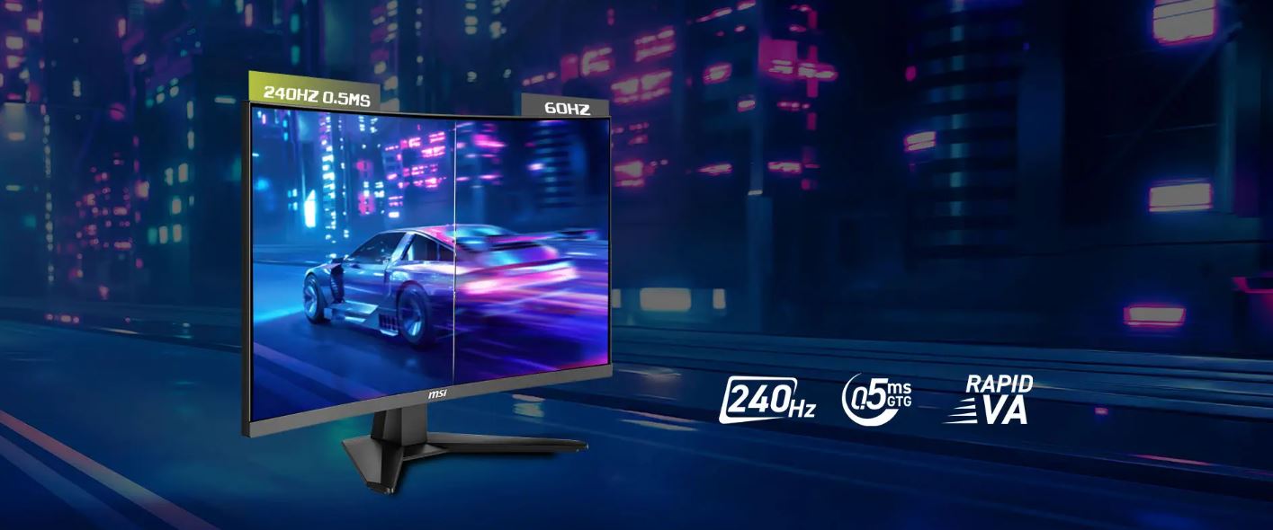 Zažijte pohlcující hraní s herním monitorem MAG 274CF X24. Je vybaven panelem s rozlišením 1920 x 1080 (FHD), obnovovací frekvencí 240 Hz a rychlou odezvou 0,5 ms (GtG, min.). Monitor je připraven pro HDR, což vylepšuje poutavé detaily díky úpravám kontrastu a stínů. Herní monitor MSI MAG 274CF X24, navržený pro soutěžní FPS, RPG/MMORPG z pohledu první osoby a letecké/závodní simulátory, posouvá příležitostné hraní na novou úroveň a vyzývá hráče, aby viděli za hranice hry.
