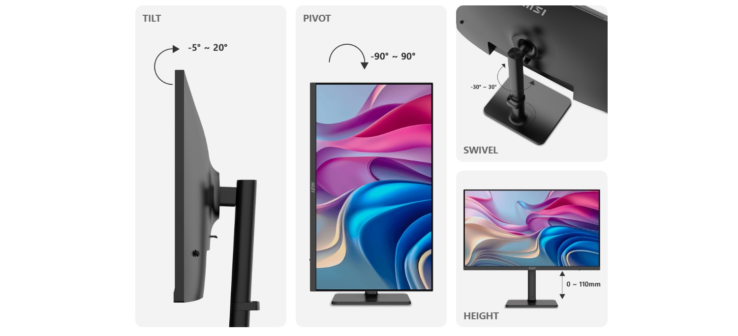 DĂky nastavitelnĂ©mu stojanu mĹŻĹľete vĹľdy pĹ™izpĹŻsobit zpĹŻsob, jakĂ˝m vidĂte a pracujete. NajdÄ›te si nejvhodnÄ›jšà polohu pro sebe.