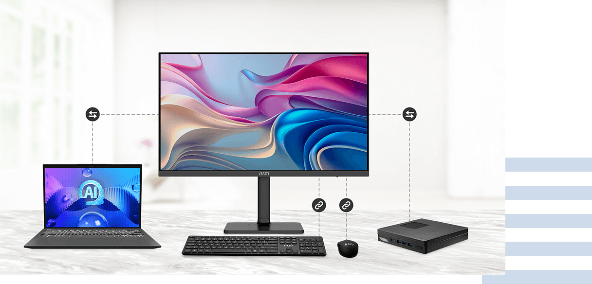 Funkce KVM zjednodušuje pracovnĂ postupy tĂm, Ĺľe umoĹľĹuje plynulĂ© pĹ™epĂnánĂ mezi zaĹ™ĂzenĂmi, sniĹľuje nepořádek na stole a zvyšuje produktivitu. NabĂzĂ efektivnĂ Ĺ™ešenĂ pro správu vĂce zaĹ™ĂzenĂ z jednoho monitoru.