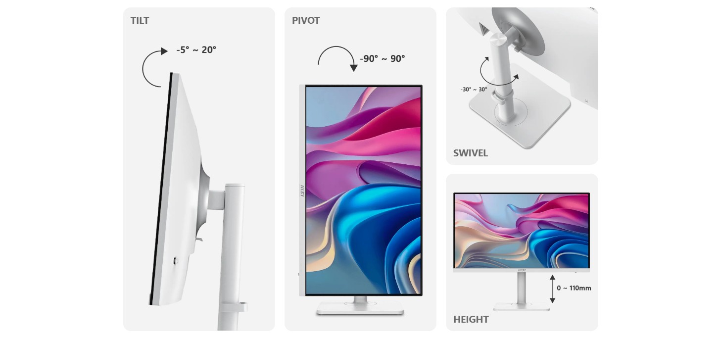 DĂky nastavitelnĂ©mu stojanu mĹŻĹľete vĹľdy pĹ™izpĹŻsobit zpĹŻsob, jakĂ˝m vidĂte a pracujete. NajdÄ›te si nejvhodnÄ›jšà polohu pro sebe.