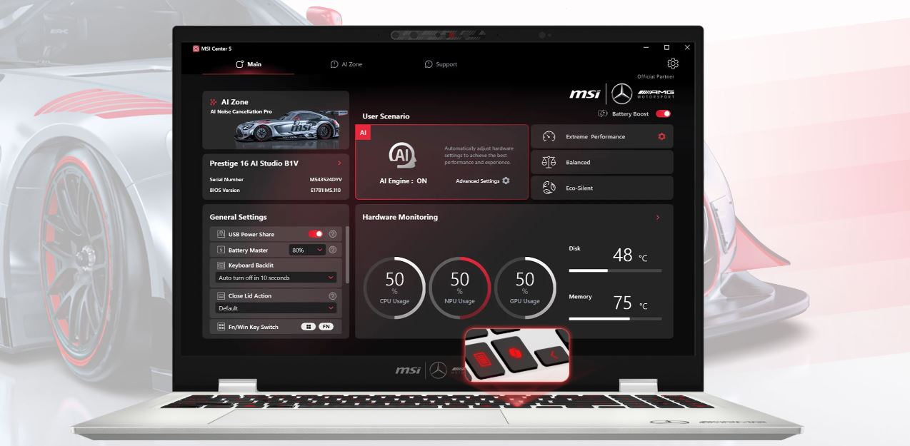 Odkaz na stránky výrobce: https://www.msi.com/Business-Productivity/Prestige-16-AI-Plus-Mercedes-AMG-Motorsport-B2VMX/