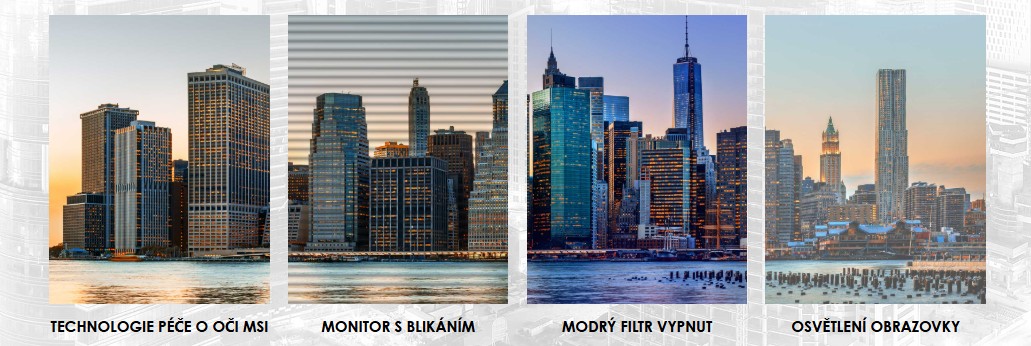 MSI Eye Care: Technologie proti blikání + méně modrého světla + displej s antireflexní úpravou