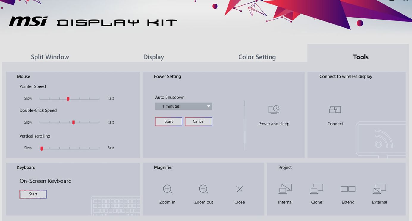 Exkluzivní software Display Kit od společnosti MSI poskytuje nejpohodlnější nástroj, správné zobrazení, které vám umožní číst a zároveň si užívat obraz, a barevný režim pro práci i každodenní použití.