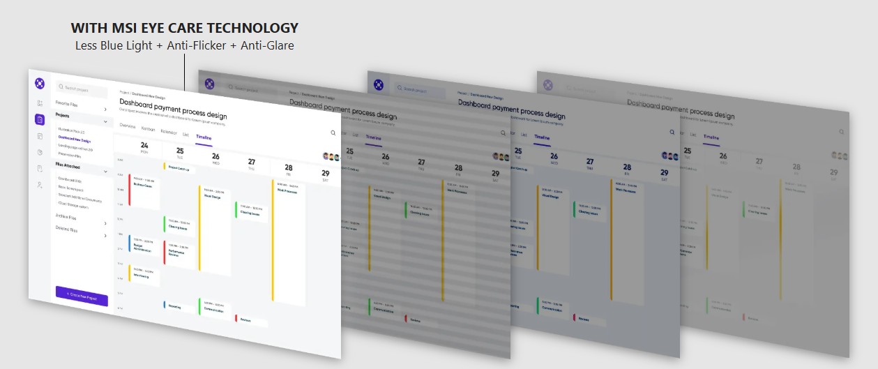 *Technologie MSI EyesErgo s funkcemi Anti-Flicker a redukcí modrého světla pomáhá předcházet únavě a namáhání očí.