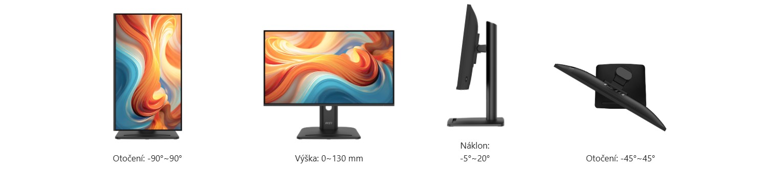 *Stojan je navržen s ergonomickými prvky – možnost náklonu, otočení, nastavení výšky a režimu pivot.