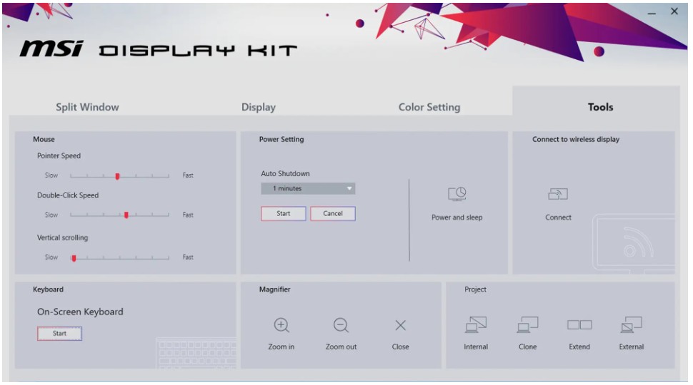 Exkluzivní software Display Kit od společnosti MSI poskytuje nejpohodlnější nástroj, správné zobrazení, které vám umožní číst a zároveň si užívat obraz, a barevný režim pro práci i každodenní použití.