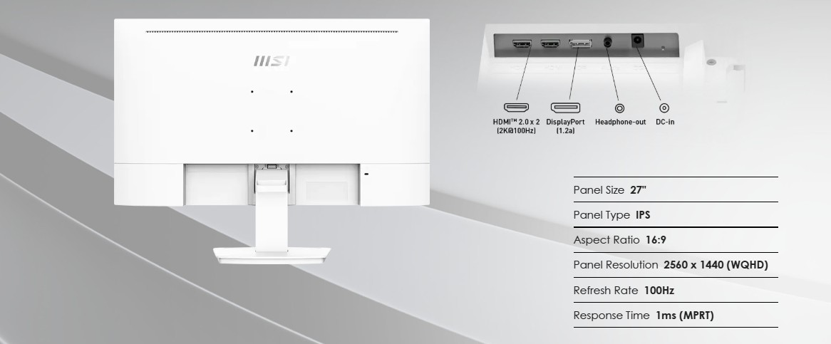 MSI Pro/MP273QW E2/27"/IPS/QHD/100Hz/1ms/Bílá/3R