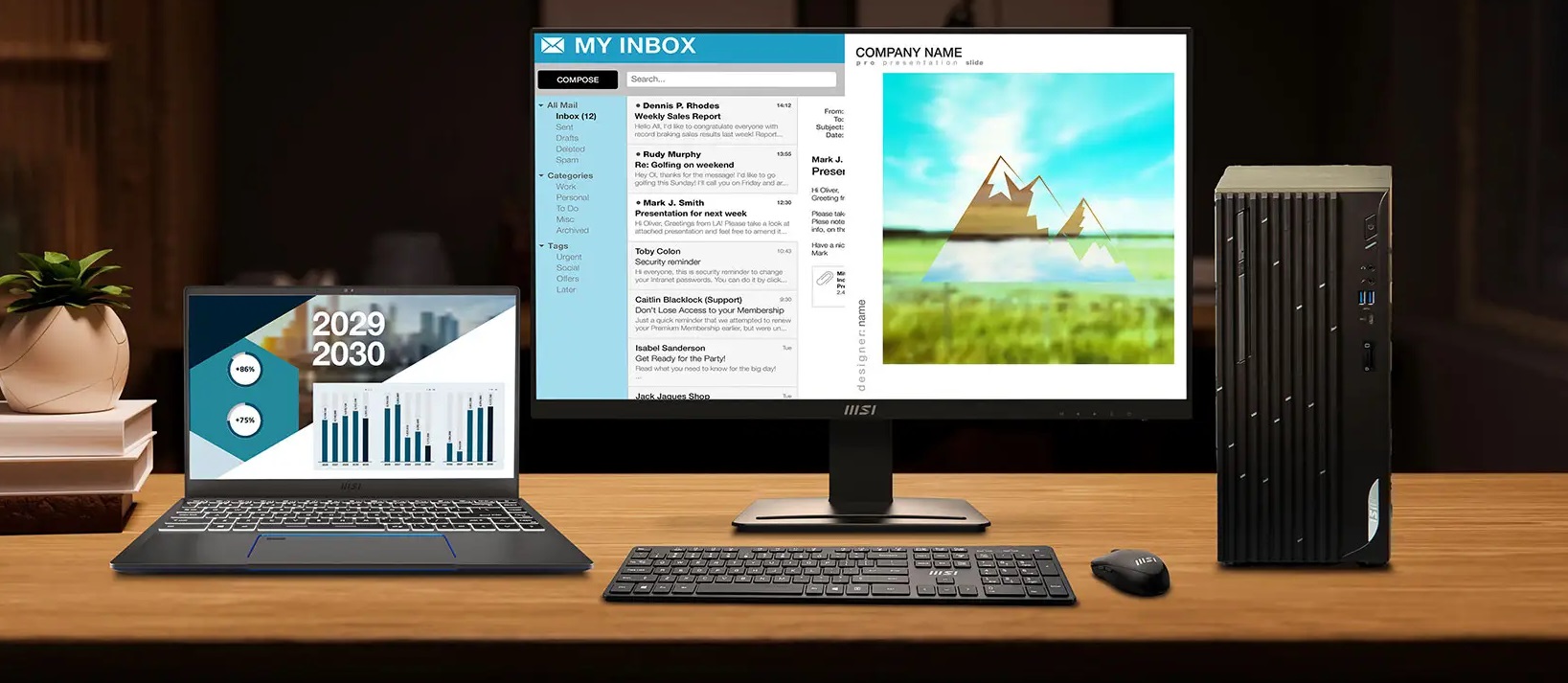 Díky exkluzivní funkci MSI Productivity Intelligence (P.I.) je naprosto snadné nastavit a přepínat obraz v obraze (PIP) i obraz po obraze (PBP), což vám umožní zobrazit kreativní obsah z více zdrojů současně.