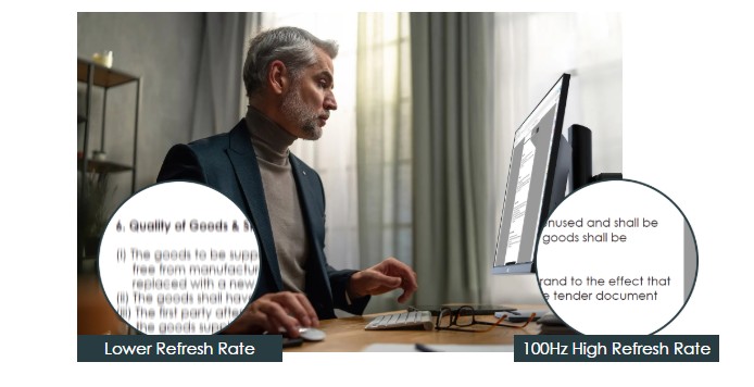 ZúčastnÄ›te se nejplynulejšà online konferenÄŤnĂ hovoru a ukaĹľte zákaznĂkĹŻm perfektnĂ reklamnĂ video s obnovovacĂ frekvencĂ 100 Hz. VĂ˝zkum spoleÄŤnosti VESA ukazuje, Ĺľe pro 95 % uĹľivatelĹŻ se obnovovacĂ frekvence 85 Hz stala de facto standardem pro běžnĂ© pouĹľitĂ, kterĂ˝ zobrazuje „neblikajĂcĂ“ obrázky.