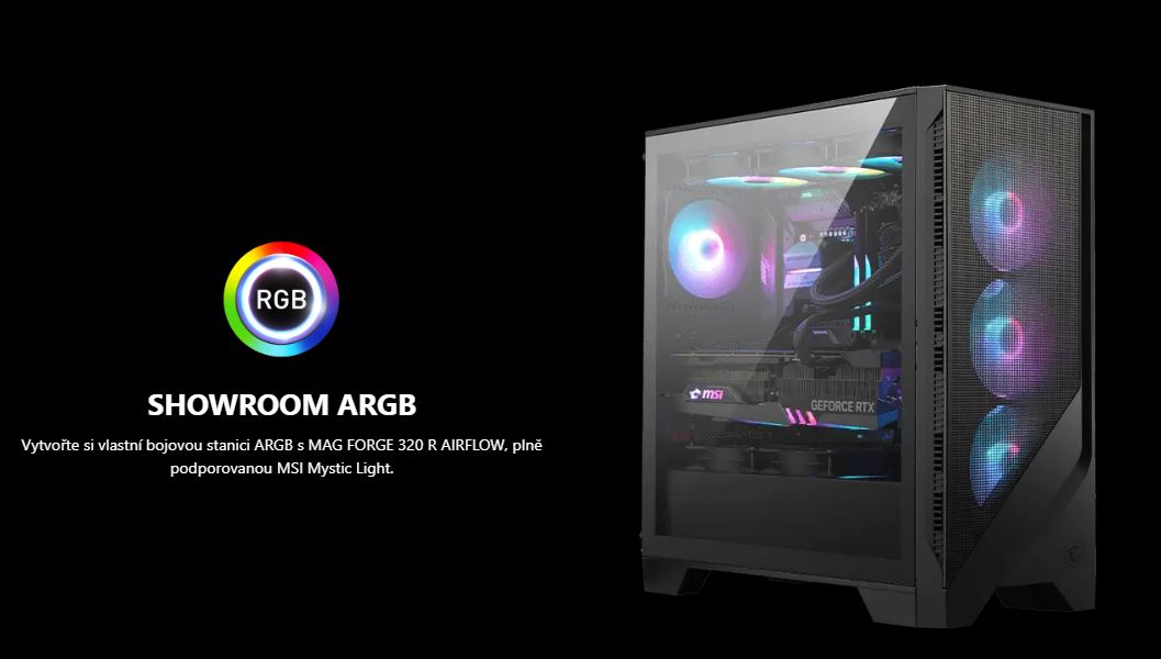 MSI MAG FORGE 320R AIRFLOW/Midi Tower/Transpar./Černá