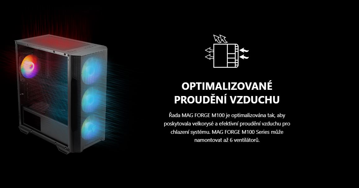 Odkaz na stránky výrobce: https://www.msi.com/PC-Case/MAG-FORGE-M100R/Specification?_gl=1*fgxed2*_up*MQ..*_ga*MTg1NTA5MDU2LjE3NTYyMDg2NzY.*_ga_2FQZ8W9D09*czE3NTYyMDg2NzIkbzEkZzAkdDE3NTYyMDg2NzIkajYwJGwwJGgw
