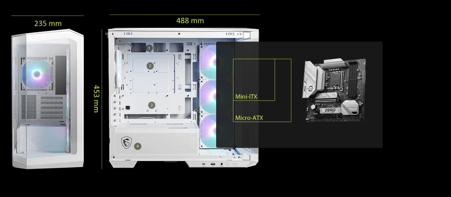 Inspirujte se logem MAG a vytvořte výrazný design šasi, který ztělesňuje jedinečné vlastnosti MAG. Vzhled skříně vychází z charakteristických linií značky MAG.