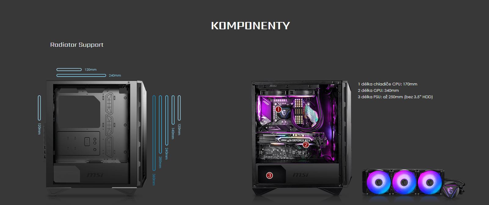 *Přední: 3 x ARGB Fan