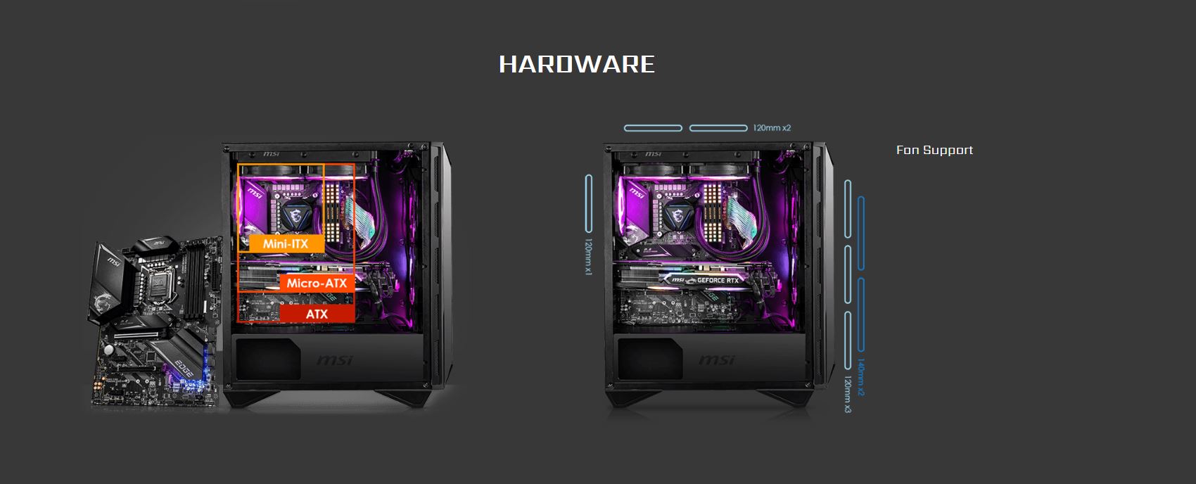 Ĺada MPG GUNGNIR 110 odhaluje váš arzenál pomocĂ tvrzenĂ©ho boÄŤnĂho skla. ZapnÄ›te systĂ©m s vodnĂm chladiÄŤem, základnĂ deskou a grafickou kartou MSI pro maximálnĂ vĂ˝kon.