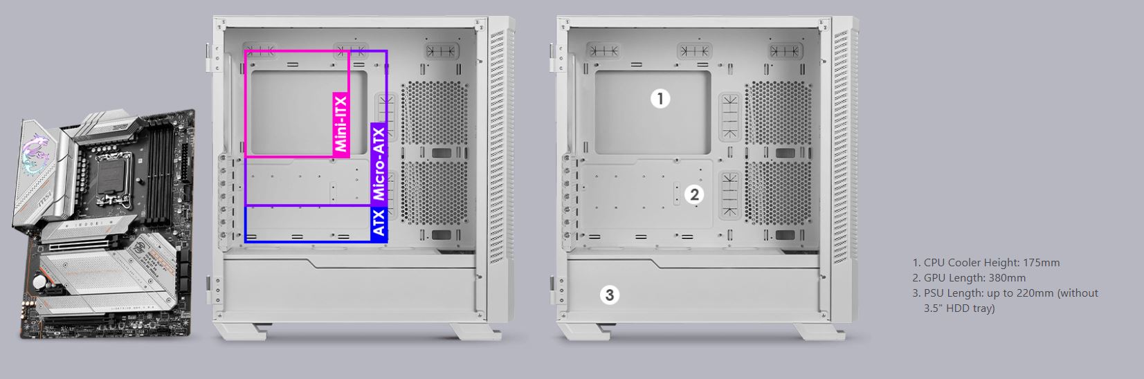 *Max. výška CPU chladiče: 175 mm / 6.9 inches