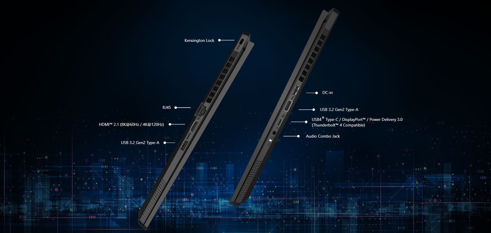 * 1x typ C (USB4®/DisplayPort™/Power Delivery 3.0/Thunderbolt™ 4 kompatibilní)