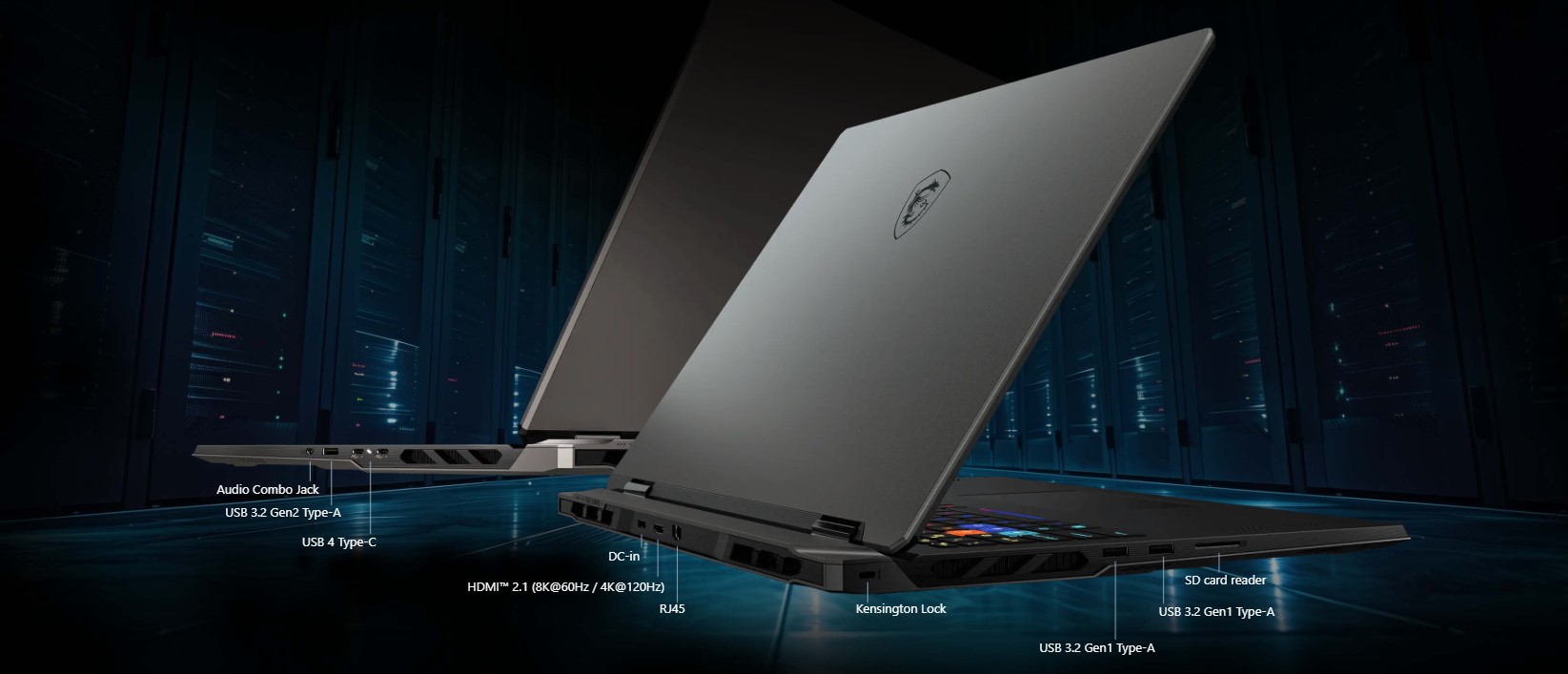 Model Vector A18 HX je vybaven nejkompletnějšími vstupními/výstupními porty, které podporují všechny druhy přenosu dat nebo výstupu na displej. Poskytuje hráčům maximální flexibilitu při používání notebooku.