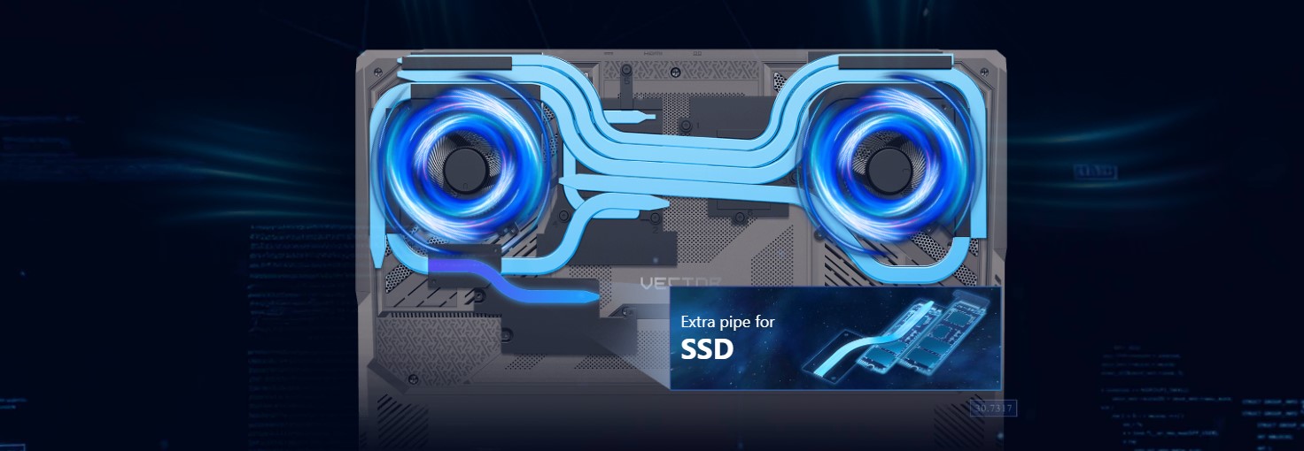 Díky inovativnímu systému Cooler Boost 5 a zkušenostem MSI s optimalizací teploty a výkonu překonává Vector A18 HX nejen výkonnostní milníky, ale také podporuje nejnovější SSD disky PCle Gen 5, které jsou vybaveny speciální měděnou trubicí pro chlazení, aby plně využily svůj špičkový potenciál.