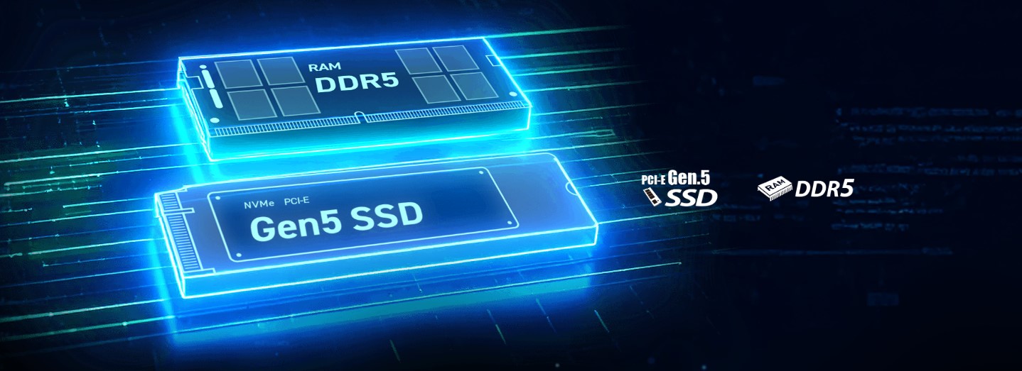 Úložiště: 1x M.2 SSD slot (NVMe PCIe Gen4), 1x M.2 SSD slot (NVMe PCIe Gen5) kompatibilní