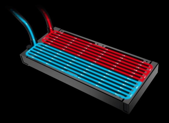 Zvětšením kontaktní plochy mezi chladicí kapalinou a měděnou základnou vodního bloku maximalizuje řada MAG CORELIQUID E odvod tepla z CPU. Zvýšená hustota mikrokanálkového designu zlepšuje účinnost systému vodního chlazení zvětšením kontaktní plochy.