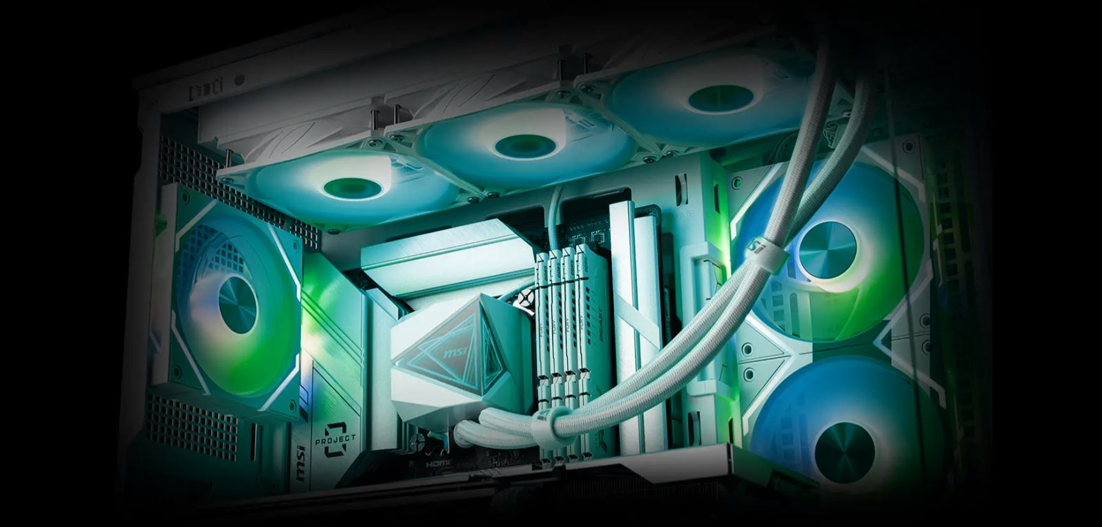 Na obou stranách předinstalovaných ventilátorů se hráči mohou rozhodnout, zda si kryt kabelu nainstalují sami, aby dosáhli čistšího vzhledu.
