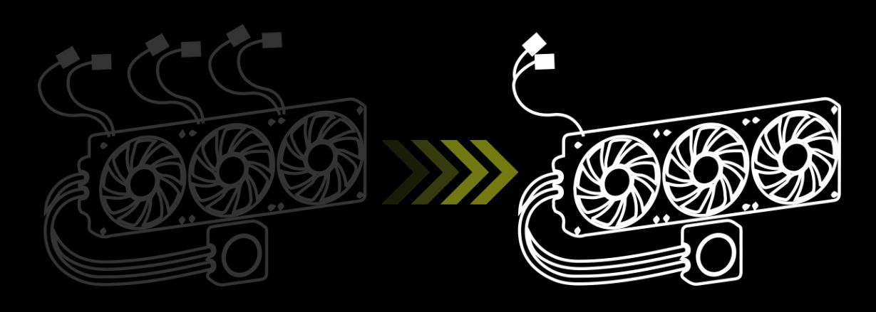 Dříve vyžadovala vodní 360 mm chlazení uspořádání nejméně šesti kabelů. Nyní jsou ventilátory nejen předinstalovány, ale také se zjednodušila doba potřebná k uspořádání kabelů na pouhý jeden kabel. To zvyšuje uživatelskou přívětivost, snižuje zátěž při instalaci a zvyšuje pohodlí při montáži.