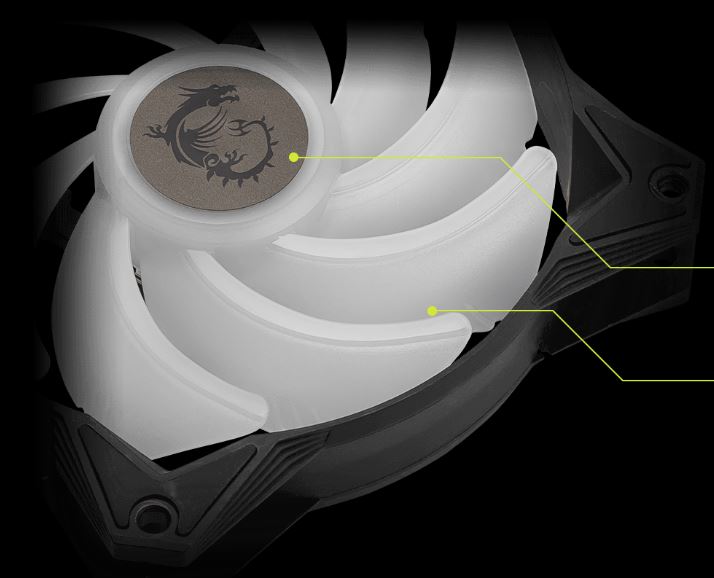 Ventilátor vybavený dvěma kuličkovými ložisky má obecně delší životnost ve srovnání s jinými typy ložisek. Lopatky ventilátoru jsou vyrobeny z akrylu s nízkým obsahem nečistot pro lepší prezentaci ARGB osvětlení.