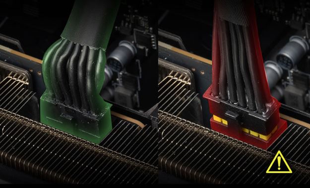 Barva konektoru 16pinového kabelu PCIe byla změněna na žlutou, aby uživatelé mohli snadno rozpoznat, zda je konektor správně zapojen.