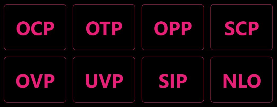 *Ochrana: OCP/ OTP/ OPP/ SCP/ OVP/ UVP/ SIP/ NLO