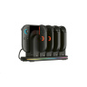 Tato nabíjecí dokovací stanice od společnosti Nacon přijde vhod všem majitelům nové herní konzole Nintendo Switch 2 i původní herní konzole Nintendo Switch, kteří často potřebují nabíjet větší počet ovladačů Joy-Con. Stanice umožňuje nabíjet současně až čtyři ovladače, jakož i samotnou konzoli, jejímuž přehřátí zabraňuje zabudovaný chladicí větráček. O stavu nabíjení každého z ovladačů informuje příslušný LED ukazatel, zatímco RGB proužek s výběrem z devíti různých efektů dodává stanici stylový, moderní vzhled. Protože napájecí USB-C kabel není součástí balení, slouží k připojení stanice do elektrické sítě originální napájecí příslušenství dodávané s konzolí.
