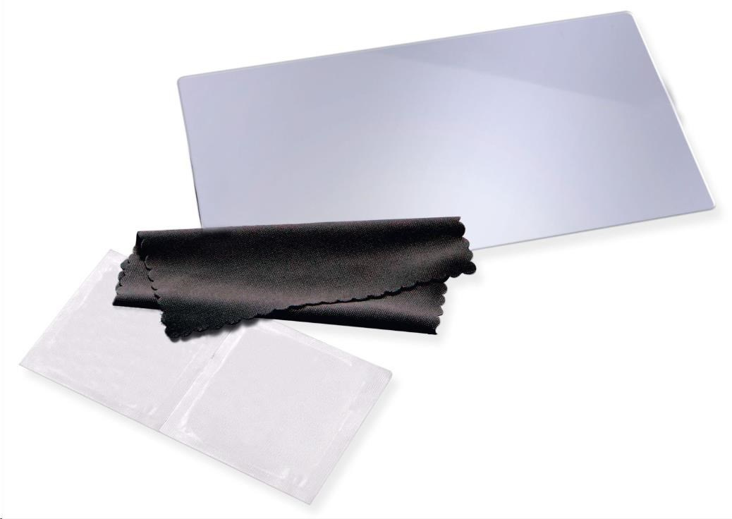 • Součástí balení je čisticí hadřík a dva dezinfekční vlhčené ubrousky.
