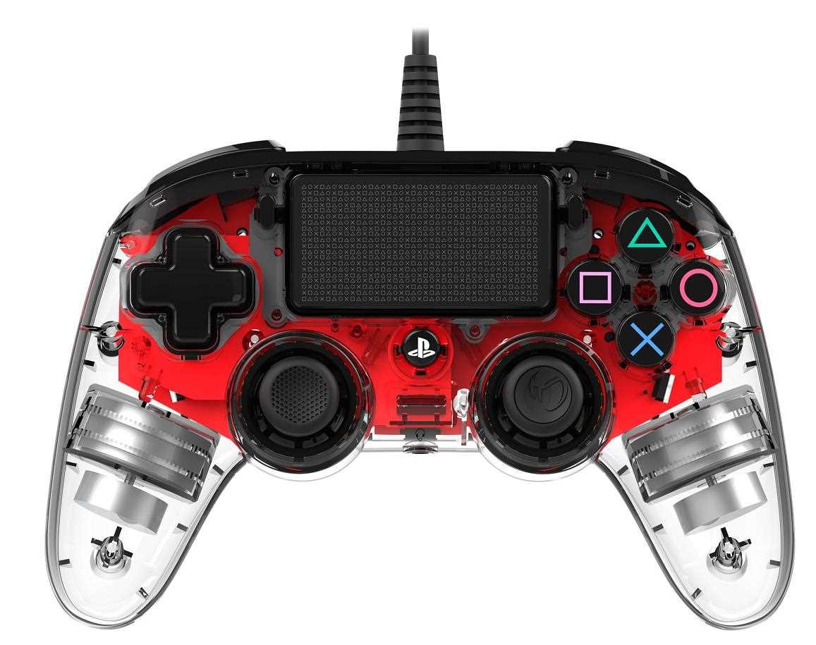 Nacon Wired Compact Controller - ovladač pro PlayStation 4 - průhledný červený