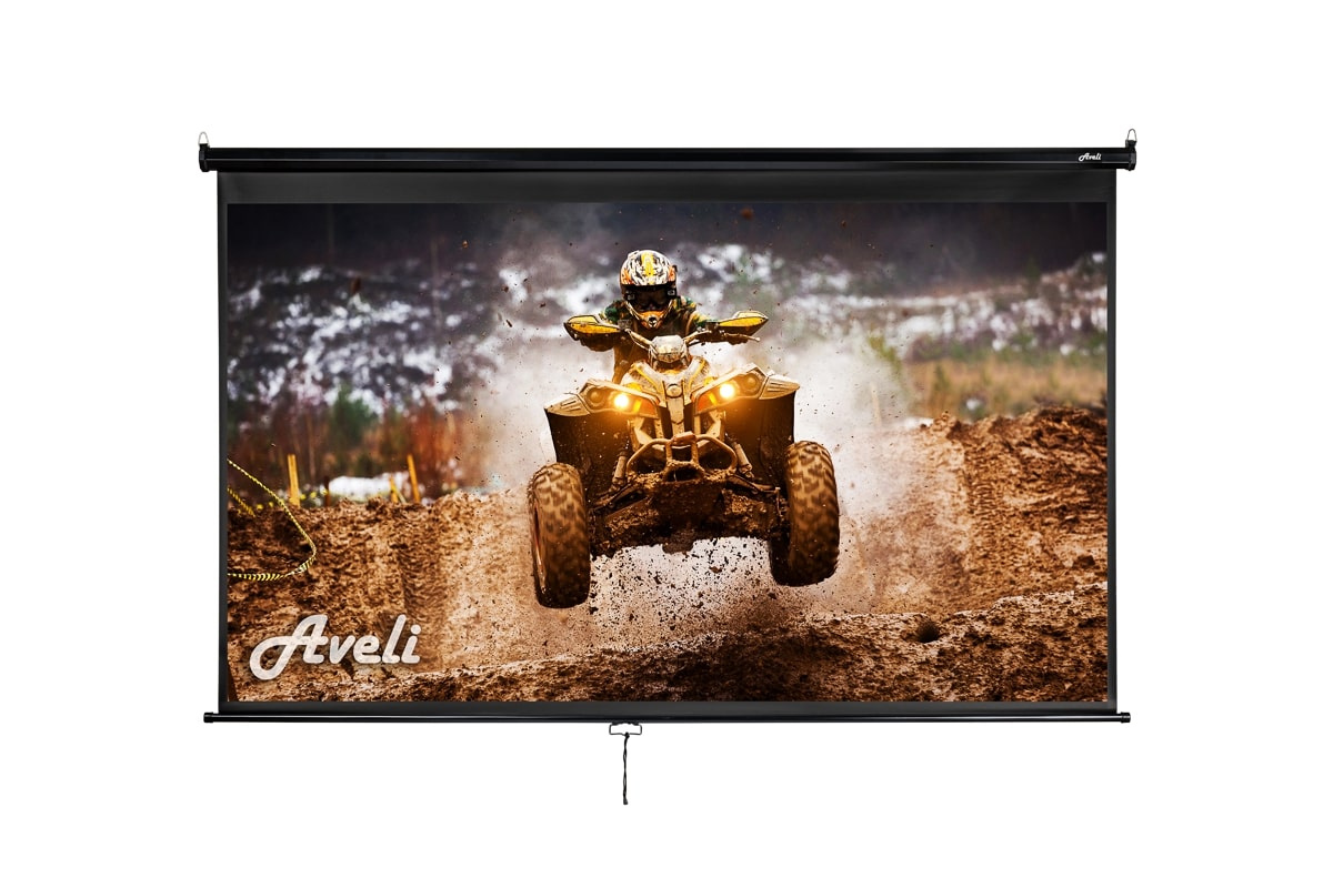 Nástěnné projekční plátno AVELI, 204x115cm (16:9) 92", černý tubus