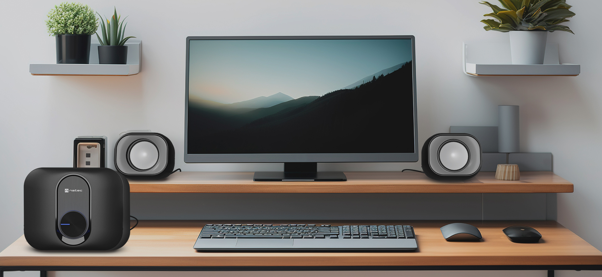 Máte málo mĂsta, ale reproduktory zabudovanĂ© v notebooku nebo monitoru vám nestaÄŤĂ? Natec PUG je ideálnĂ volbou, která vám umoĹľnĂ vychutnat si kvalitnĂ zvuk i pĹ™i nedostatku mĂsta. NavĂc je tato malá souprava napájena klasickĂ˝m konektorem USB typu A. Je to jednoduchĂ© a efektivnĂ Ĺ™ešenĂ, dĂky kterĂ©mu zapomenete na zamotanĂ© kabely a těžkĂ© napájecĂ adaptĂ©ry.