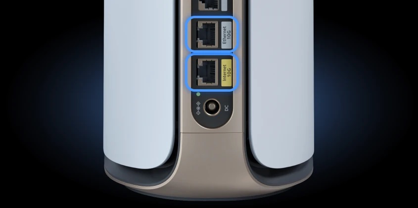 10Gb/s a 2,5Gb/s ethernetové porty umožňují bezkonkurenční rychlost a spolehlivost pro kabelové připojení a možnost kabelového backhaulu 10 Gb/s