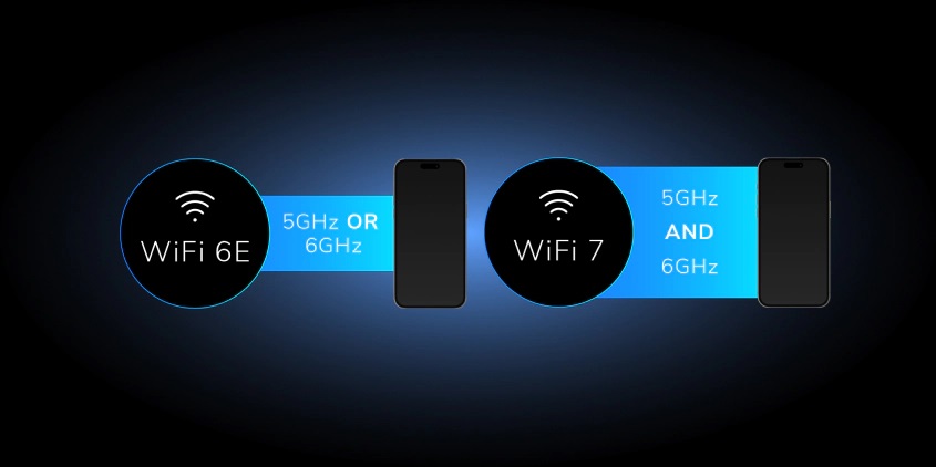 Orbi WiFi 7 využívá obě 6GHz a 5GHz pásma WiFi najednou, aby se zabránilo síťovému provozu a abyste zůstali připojeni, pokud se pohybujete mimo dosah jednoho pásma. Umožňuje také zařízením současně odesílat a přijímat data v obou pásmech WiFi, čímž se zvyšuje propustnost.