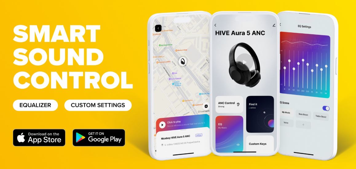 Polaď si sluchátka na maximum. Vylepšující funkce na tebe čekají v naší mobilní aplikaci pro chytrou domácnost Niceboy ION. Máš rád výraznější basy? S dedikovaným ekvalizérem si nastavíš zvuk podle svého gusta. Appka zároveň ukazuje i stav baterie. A jestli se ti stává, že sluchátka někam položíš a pak je nemůžeš najít – tohle ti změní život. Ukazují totiž mapu s místem, kde jsi je naposledy připojil k telefonu.
