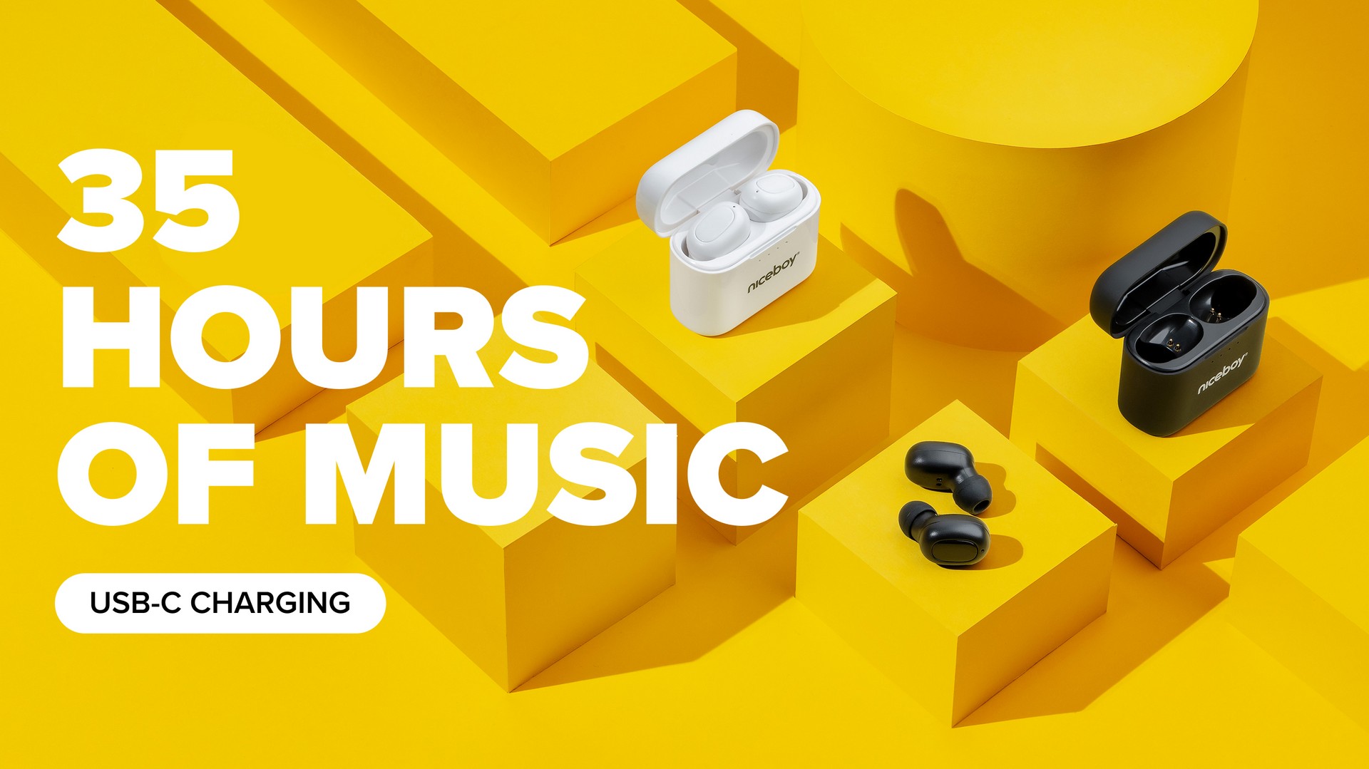 Sluchátka Niceboy Podsie 4 mají neuvěřitelnou výdrž. Budou tě celý den bavit hudbou, podcasty a podpoří tě i v práci na online hovorech – vydrží totiž až 9 a půl hodiny v kuse. S nabíjecím boxem dají dohromady až 35 hodin. Takže s nimi zvládneš bez nabíječky i celý víkendový trip. A když už se vybijí, nabiješ je stejným USB-C kabelem, jako máš k telefonu.