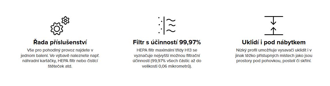 Vše pro pohodlný provoz najdete v jednom balení. Ve výbavě naleznete např. náhradní kartáčky, HEPA filtr nebo čistící štěteček atd.