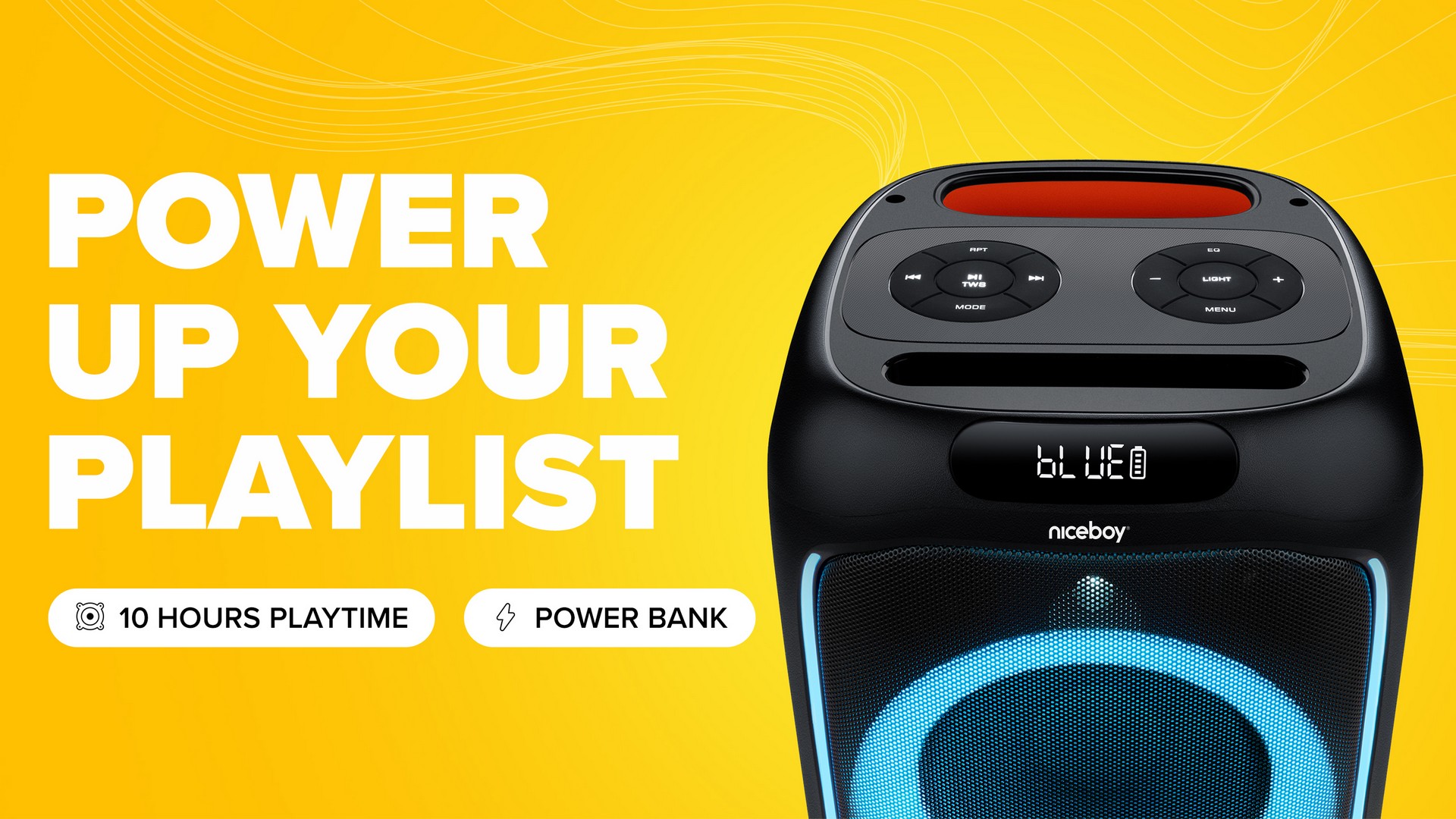 S impozantní výdrží 10 hodin na jedno nabití vás Niceboy PARTY Boom 80W ani bez elektrické zásuvky nepřestane hýčkat hudbou. A co víc, pokud vám například dochází u telefonu baterie, můžete využít reproduktor i jako powerbanku pro rychlý návrat do akce. Niceboy PARTY Boom 80W není pouhý party reproduktor, je to zdroj energie pro váš hudební svět!
