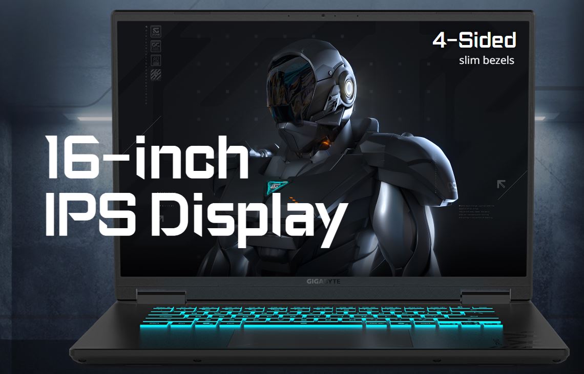 Díky štíhlým rámečkům na všech čtyřech stranách nabízí GIGABYTE GAMING A16 panoramatický displej a plynulý obraz pro hráče. Vnímejte každý vítězný moment ve hře na rychlém a plynulém displeji s větší zobrazovací plochou.